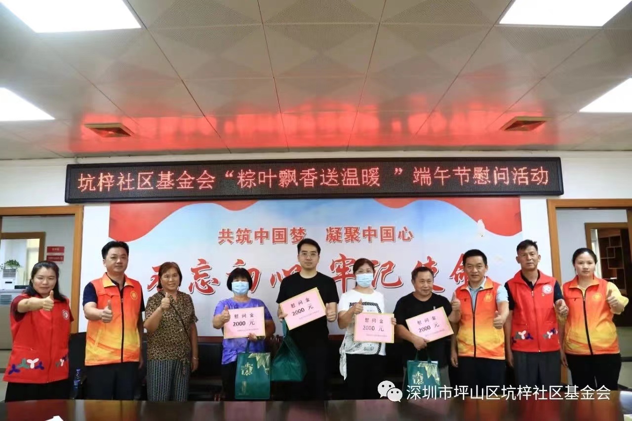 在一年一度端午佳节来临之际,6月19日,坑梓社区基金会秘书长带领工作人员先后前往坑梓社区、秀新社区、沙田社区、金沙社区、龙田社区、老坑社区开展“粽叶飘香送温暖 端午节慰问活动”。基金会理事长林汉权、常务副理事长陈国良、理事黄迎春、宋庆茹、李可辉及各社区代表一同参加活动,走访慰问社区低保户、特殊困难老人等贫困家庭,深入了解居民实际困难,向他们致以节日的问候和祝福,并送去了端午礼品、慰问金。