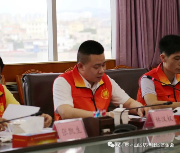 ▲坪山区坑梓社区基金会第一届理事会 理事长林汉权做工作汇报
