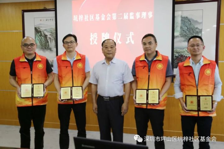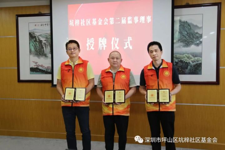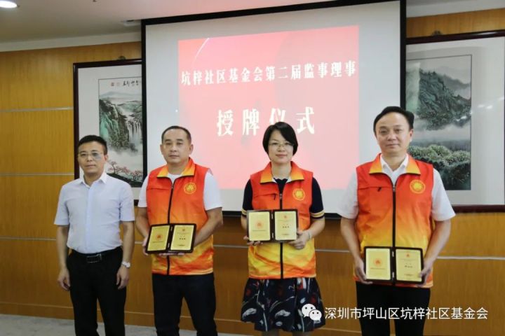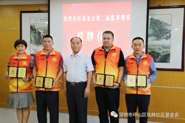 ▲坑梓街道党工委委员、公服办主任 刘旺升为基金会理事,颁发证书